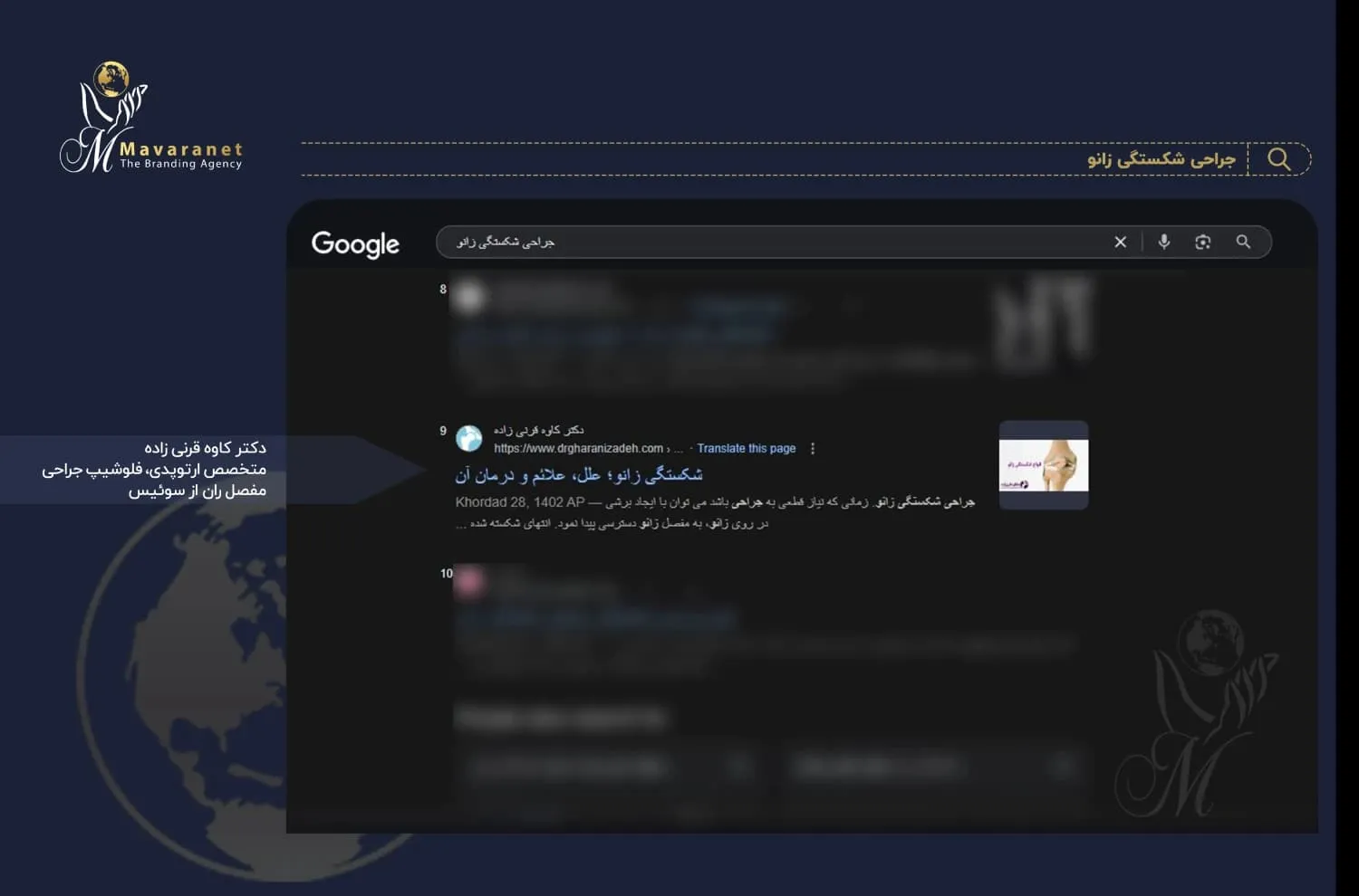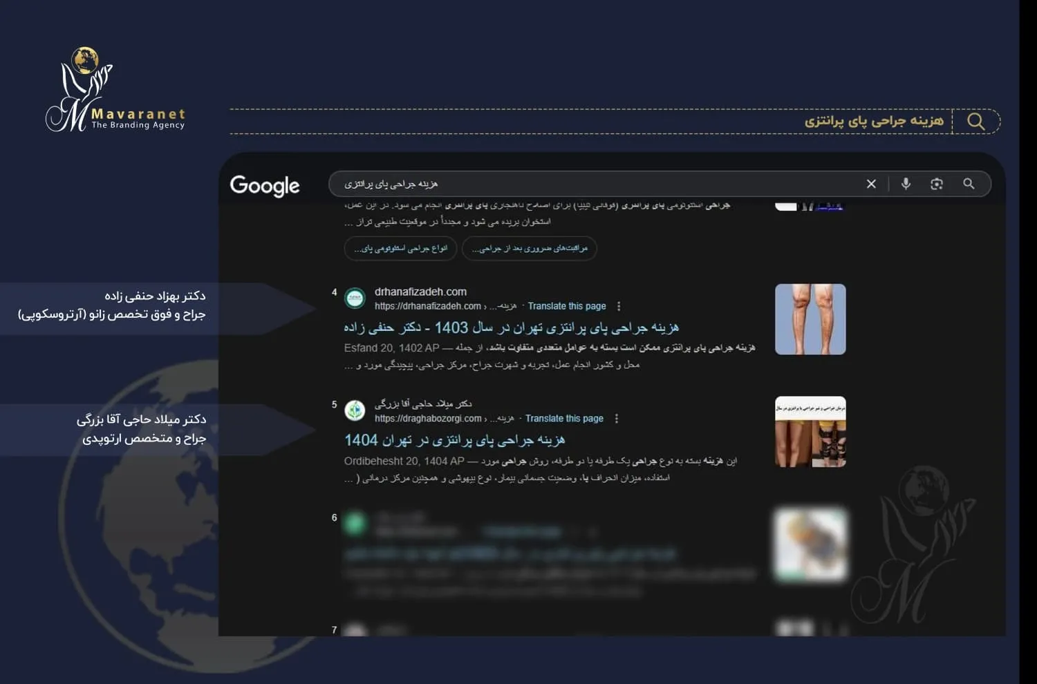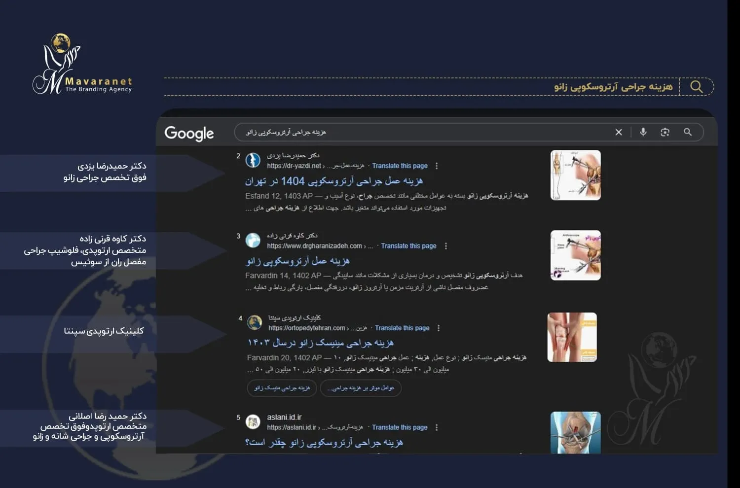 شرکت ماورانت با اجرای موفق دهها پروژه سئو در حوزههای پزشکی، توانسته جایگاه برندهای متعددی را از صفحات پایین به رتبههای اول گوگل برساند. نمونهکارهای ما شامل افزایش چشمگیر ورودی ارگانیک، تثبیت رتبه در کلمات کلیدی پررقابت، بهبود سرعت سایت، و ارتقای تجربه کاربری در کنار استراتژیهای دقیق محتوایی و لینکسازی حرفهای است. نتیجه این تلاشها، رشد پایدار ترافیک و افزایش نرخ تبدیل برای مشتریان ماست؛ مسیری که با تحلیل دادهمحور و دانش فنی بهروز طی شده و همچنان با قدرت ادامه دارد.