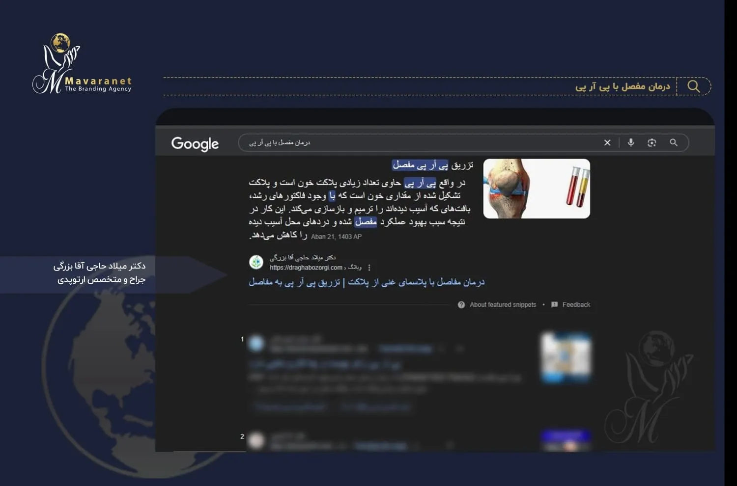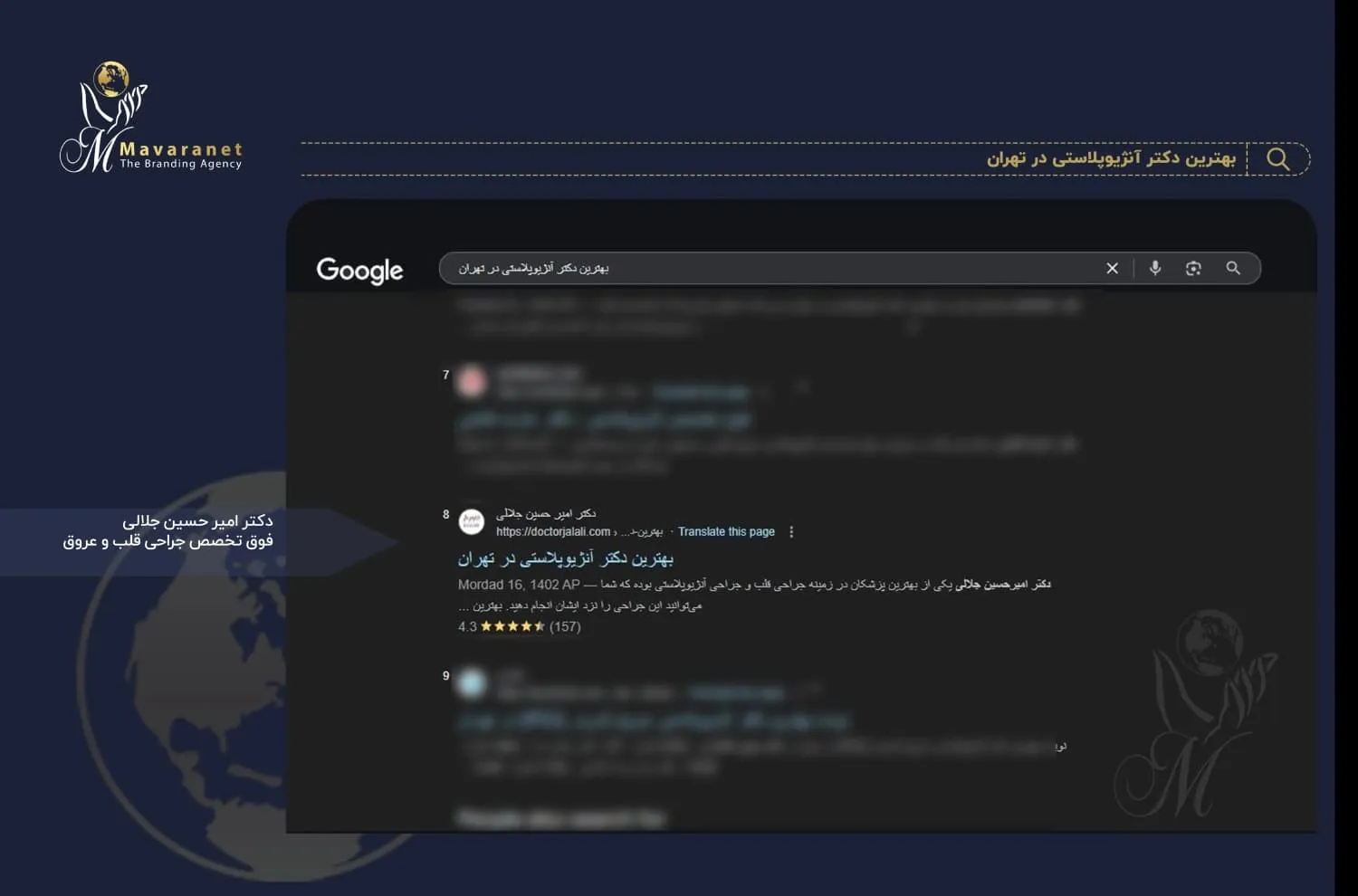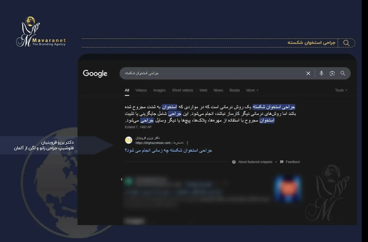 شرکت ماورانت با اجرای موفق دهها پروژه سئو در حوزههای پزشکی، توانسته جایگاه برندهای متعددی را از صفحات پایین به رتبههای اول گوگل برساند. نمونهکارهای ما شامل افزایش چشمگیر ورودی ارگانیک، تثبیت رتبه در کلمات کلیدی پررقابت، بهبود سرعت سایت، و ارتقای تجربه کاربری در کنار استراتژیهای دقیق محتوایی و لینکسازی حرفهای است. نتیجه این تلاشها، رشد پایدار ترافیک و افزایش نرخ تبدیل برای مشتریان ماست؛ مسیری که با تحلیل دادهمحور و دانش فنی بهروز طی شده و همچنان با قدرت ادامه دارد.
